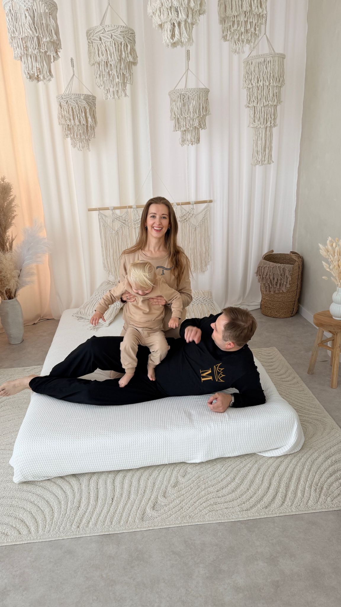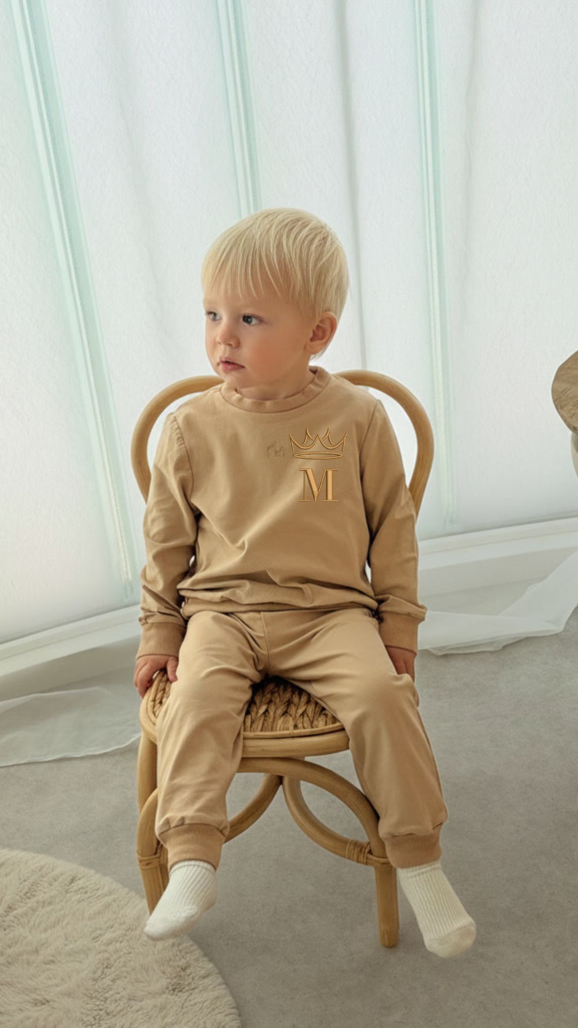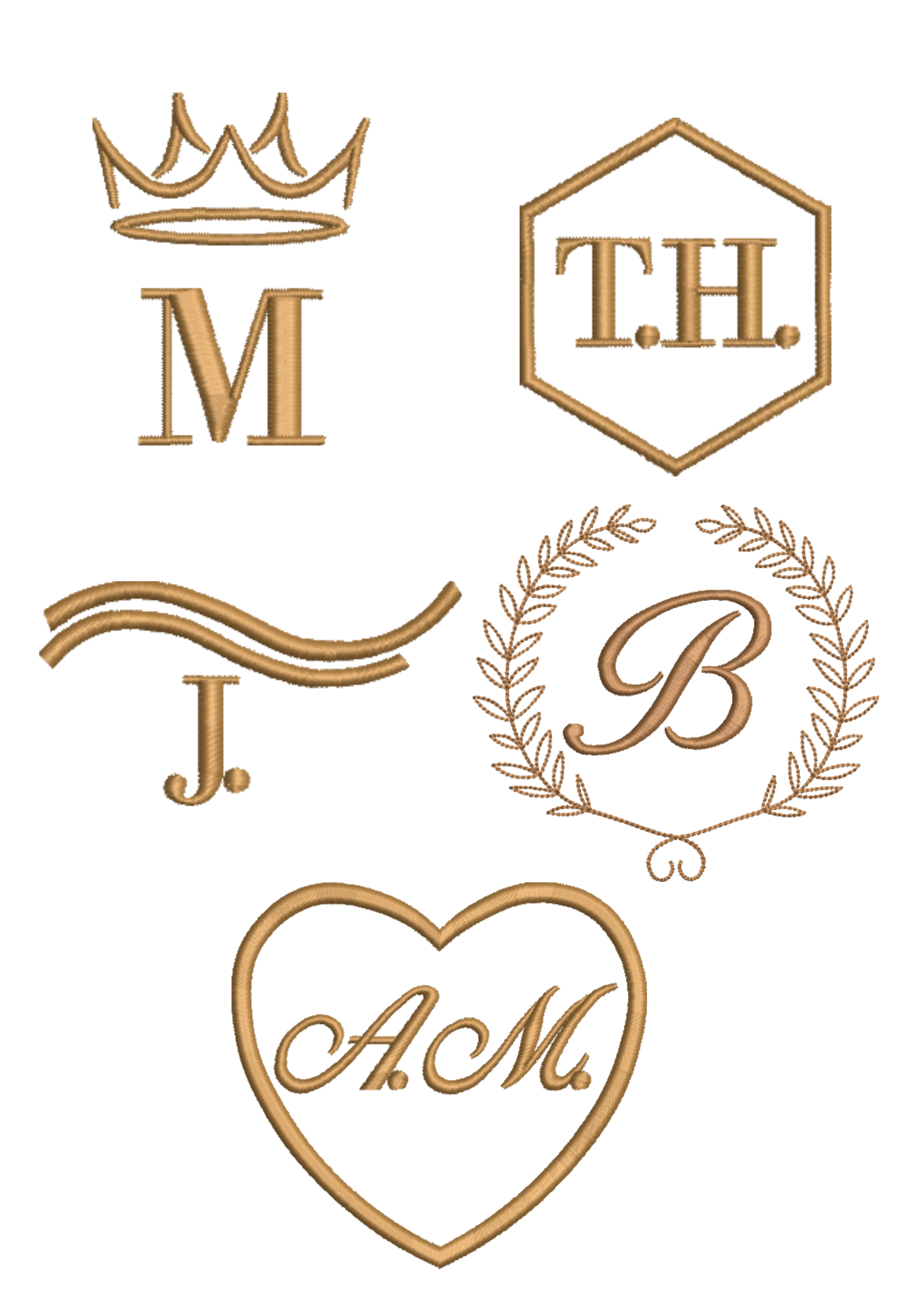 Na piersi wykonujemy haft z imieniem, inicjałami w sercu, laurze, z koroną. Możesz też stworzyć komplet dla całej rodziny w tym samym stylu.
