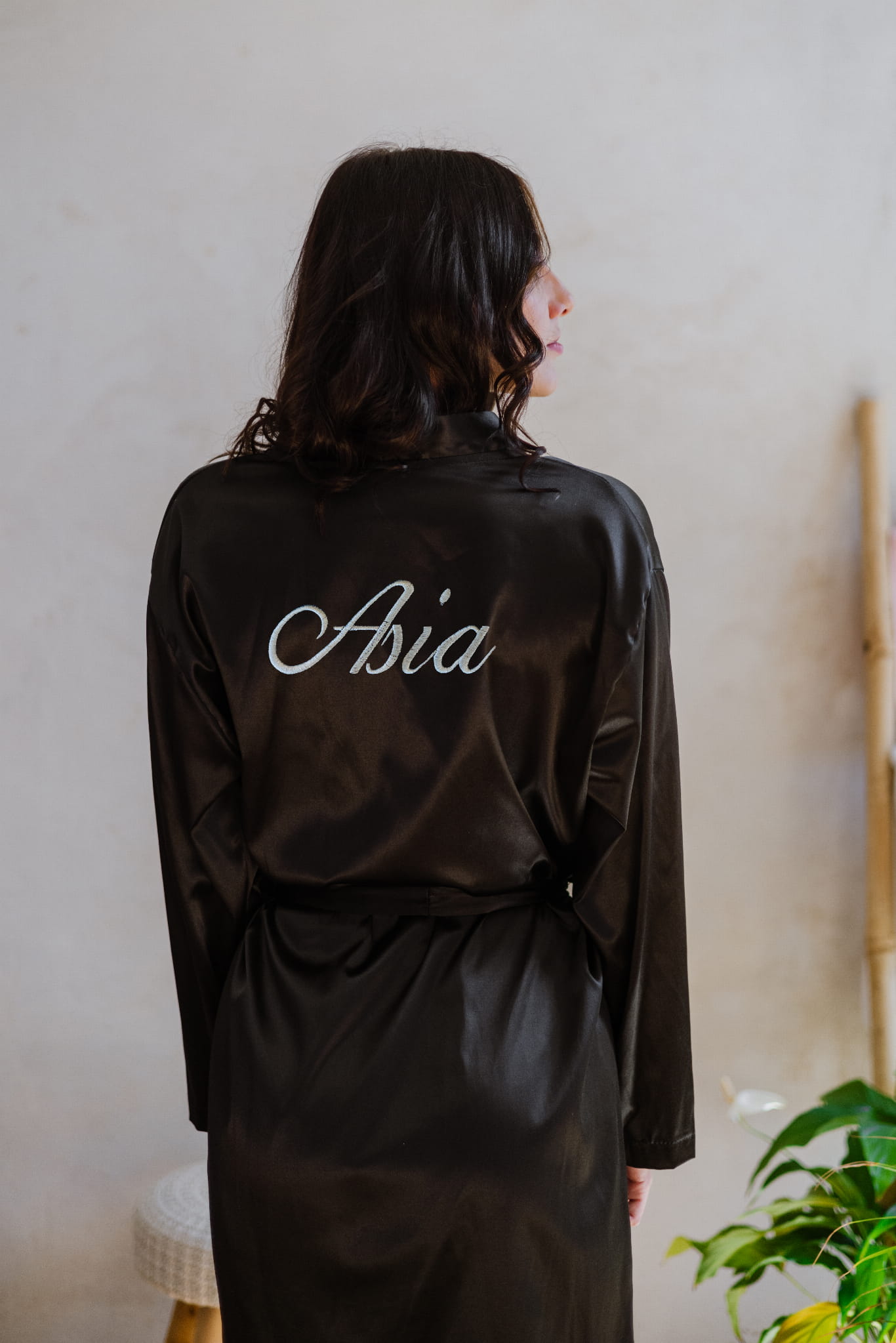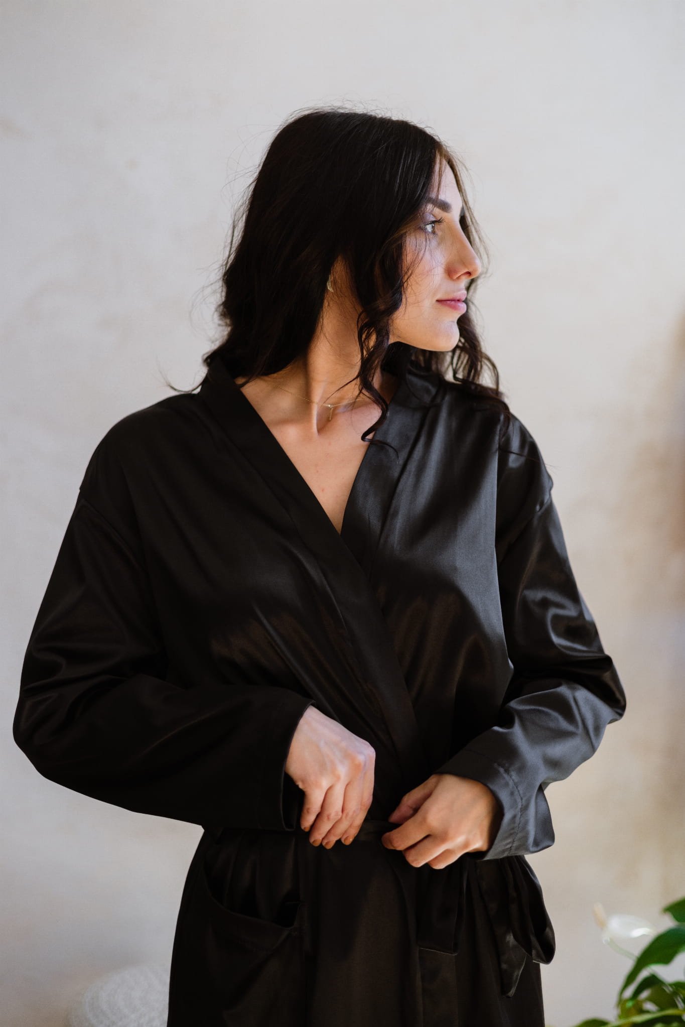 Satynowy szlafrok o klasycznym kroju w ponadczasowej czerni.