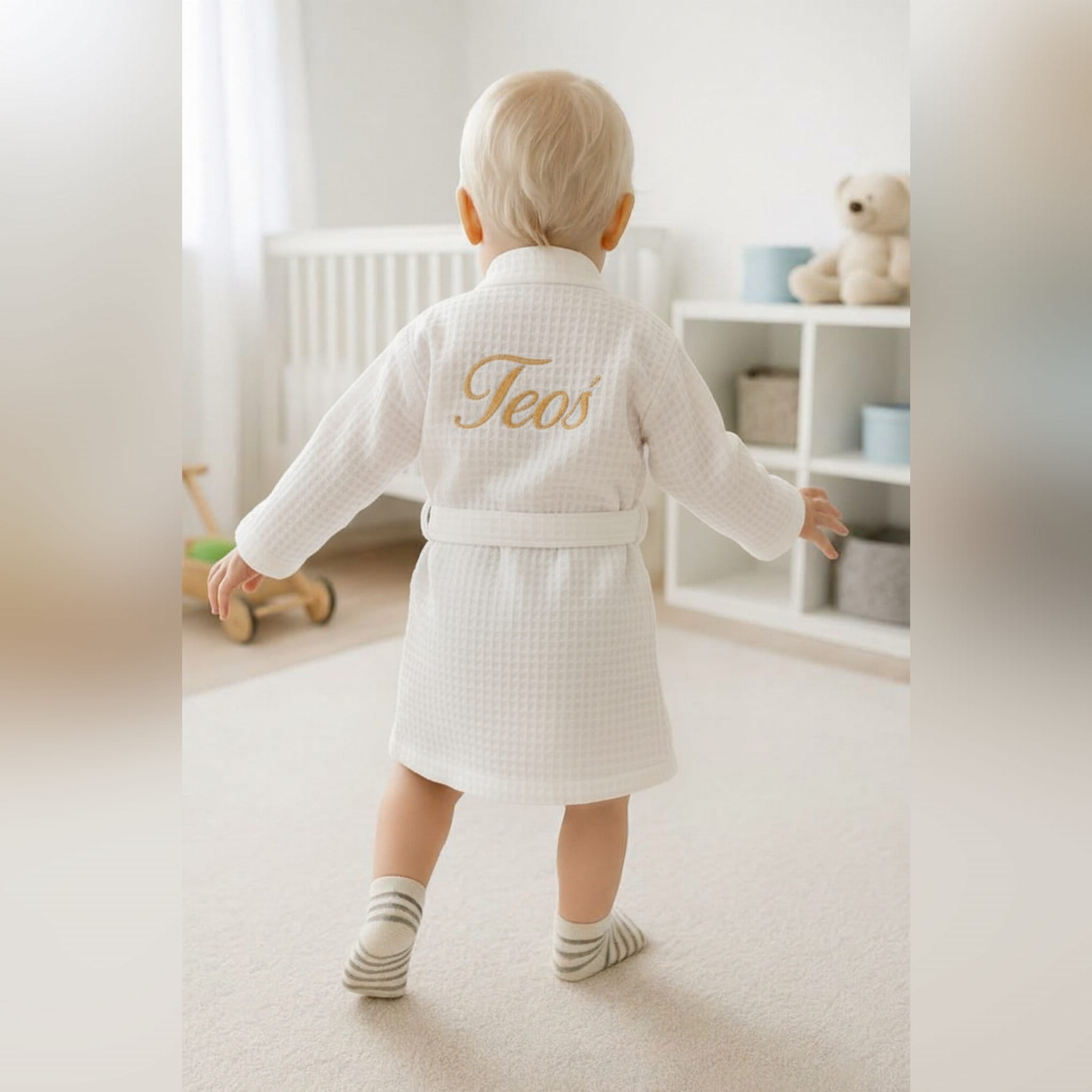 Szlafrok dziecięcy waflowy z haftem na plecach