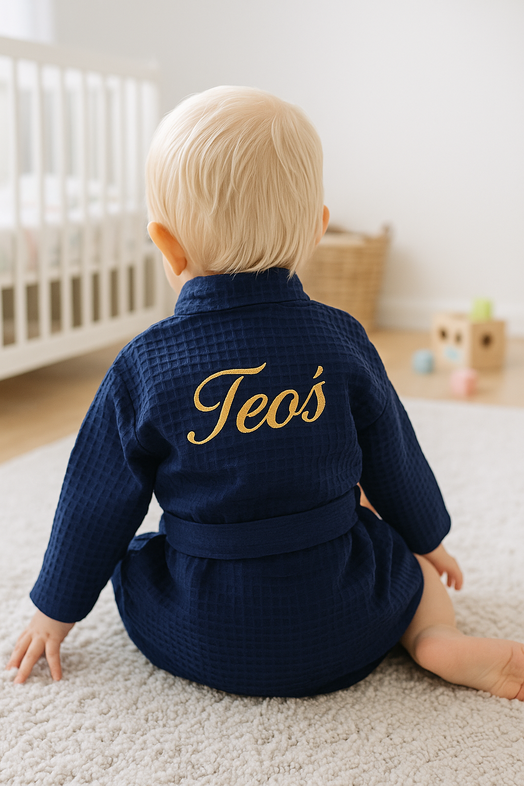 Personalizowany haft na plecach sprawia, że szlafrok staje się wyjątkowy – idealny na prezent, także z okazji sesji zdjęciowej czy