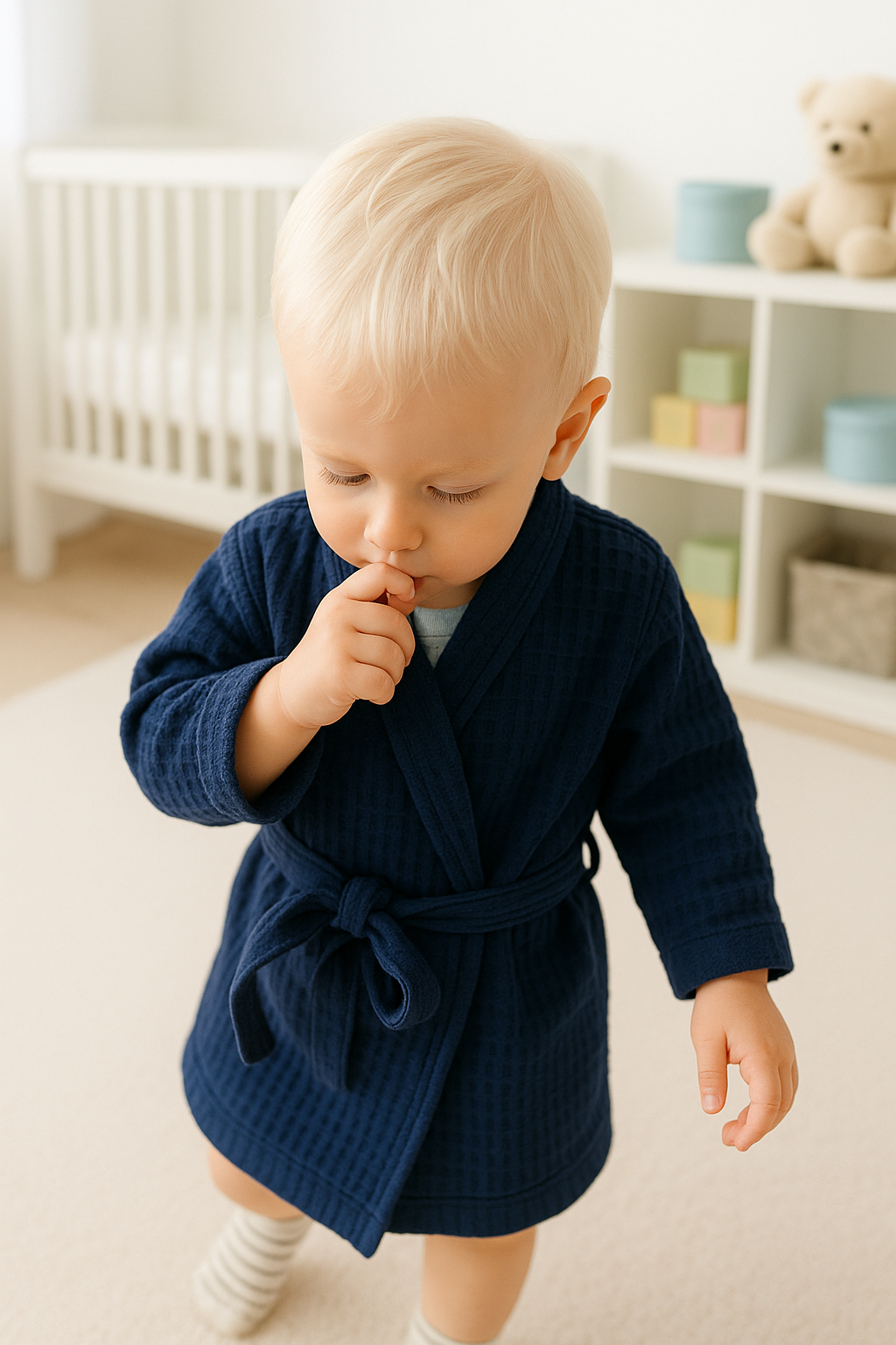 Dzięki strukturze wafla nasz dziecięcy szlafrok szybko schnie i świetnie nadaje się do wieczornej pielęgnacji po kąpieli, na basen czy w