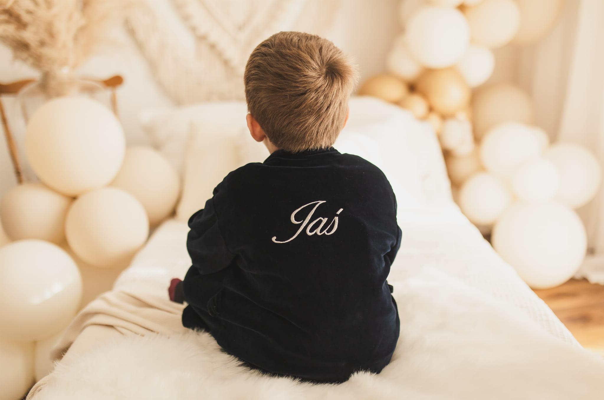 Personalizowany haft na plecach sprawia, że szlafrok staje się wyjątkowy – idealny na prezent, także z okazji sesji zdjęciowej czy ważnej uroczystości.