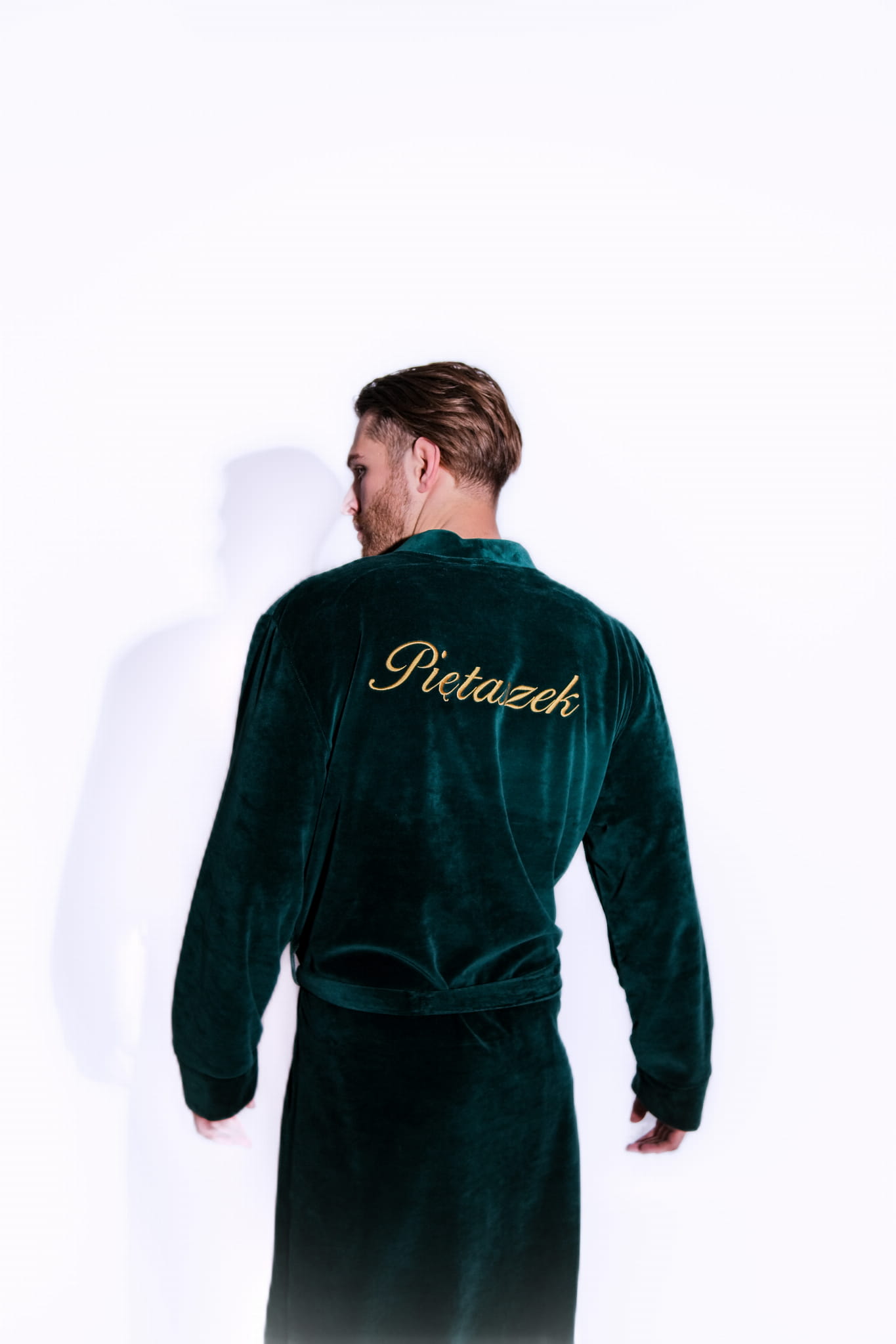 Szlafrok męski welurowy bawełniany z haftem na plecach (dłuższy)